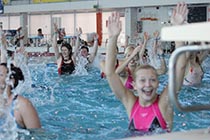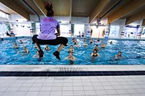 KUIDAS TREENING TOIMUB JA MIS SEE ON?Muusika saatel kehaline treening vees. Olenevalt tunnist, kas madalas (rinnuni) või sügavas vees, abivahenditeks vööd, jalamansetid, nuudlid, kerged hantlid vms. Ujumisoskus ei ole oluline. Tavaliselt juhendab treener kuival, näidates ette harjutused ja kombinatsioonid, kuid ta võib ka vees olla, seda juhul, kui kõigile on harjutused tuttavad. Tavaliselt on tund 45 - 60 min. pikkusega. Tunni sisu mitmekesistamiseks on vesiaeroobikas välja töötatud erinevad stiilid, samuti kasutatakse erinevaid vahendeid, mis annavad lisakoormust neile lihasrühmadele, mida soovitakse treenida. |