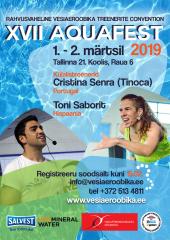 AQUAFEST 2019 XVII vesiaeroobika treenerite convention toimub 1.-2. märtsil Tallinna 21.Kooli ujulas, Raua 6. Külalistreenerid on Cristina (Tinoca) Senra Portugalist ja Toni Saborit Hispaaniast. Vaata kava SIIT XVII International Aquafitness Convention AQUAFEST 2019 March 1-2 Tere tulemast trenni! Alustame 21.Kooli ujulas 13.septembril kell 17.30, õpetajate treeningud algavad 10.septembril kell 17! Oled väga oodatud! AQUAFEST 2018 vesiaeroobika treenerite convention toimub 2.-3. märtsil Tallinnas, 21.Kooli ujulas. Külalisesinejad on Emanuel Pereira ja Joao Santos Portugalist. Vaata kava SIIT International Aquafitness Convention AQUAFEST 2018 March 2-3. Oled väga oodatud trenni 21.Kooli ujulas neljapäeviti alates 14.septembrist kell 17.30, õpetajate treeningud algavad 11.septembril kell 17 AQUAFEST 2017 toimub 3.-4.märtsil, külalisesinejateks PhD Eve Lukk - häälehoiu spetsialist Eestist ning Valeria Perelomova ja Irina Shreit Venemaalt Vaata conventioni kava SIIT XV International Aquafitness Convention AQUAFEST 2017 March 3-4, Tere tulemast trenni 21.Kooli ujulasse alates 15.septembrist kell 17.30! Õpetajatele on start 12.septembril kell 17.
